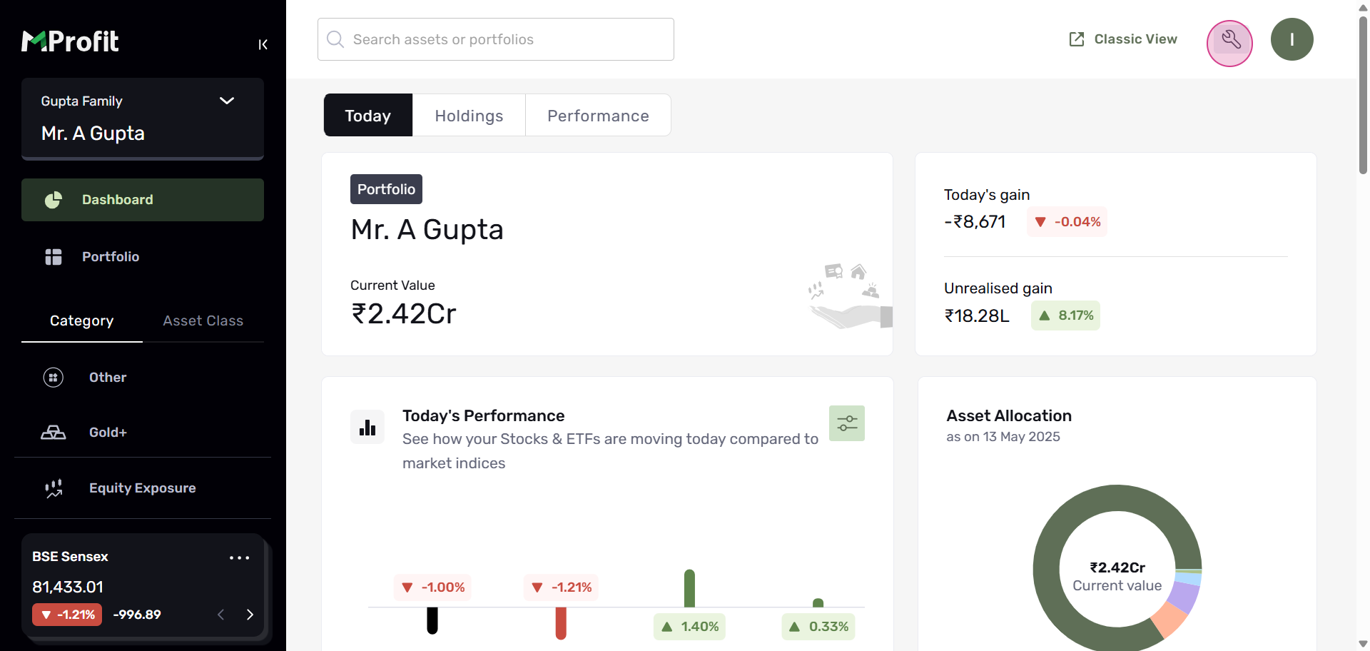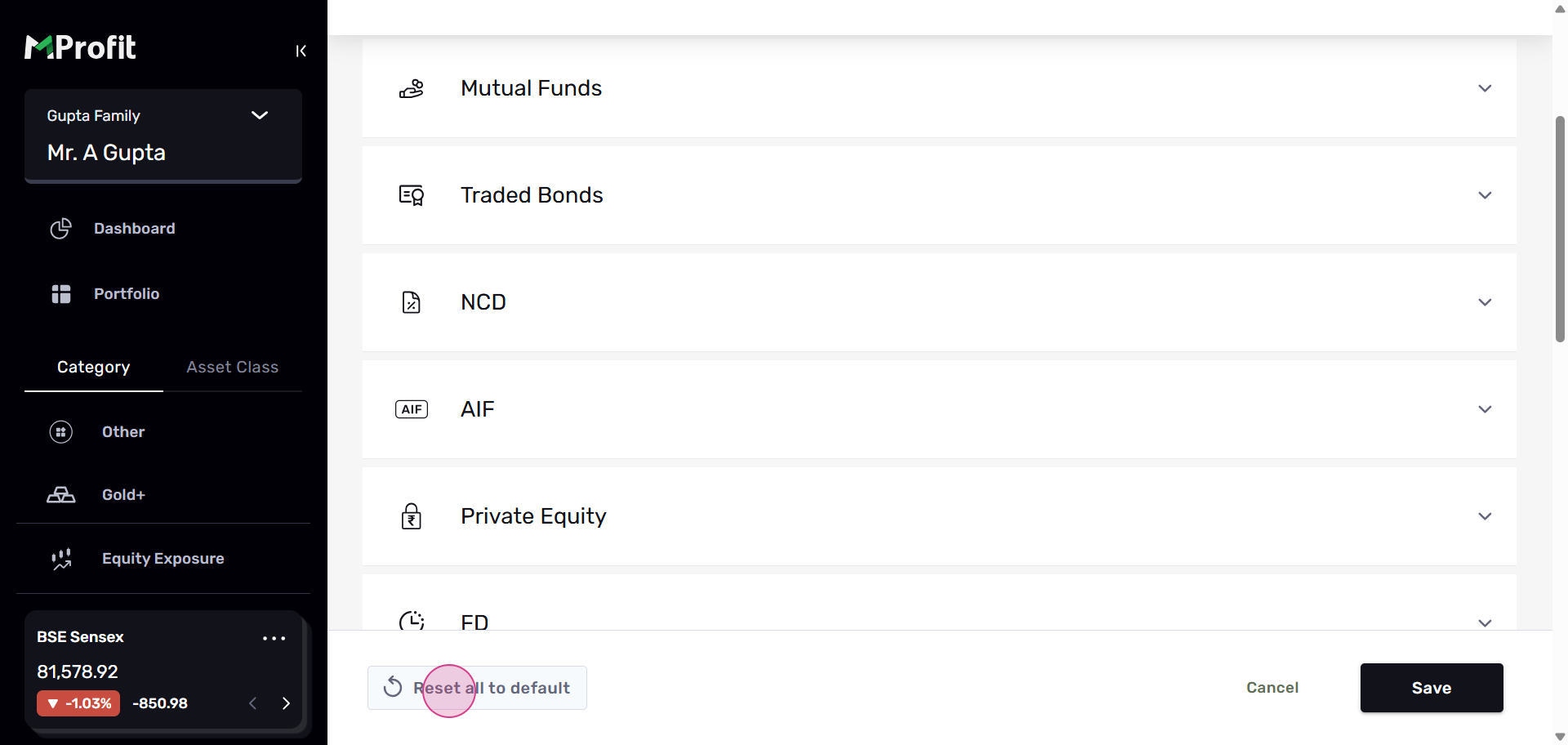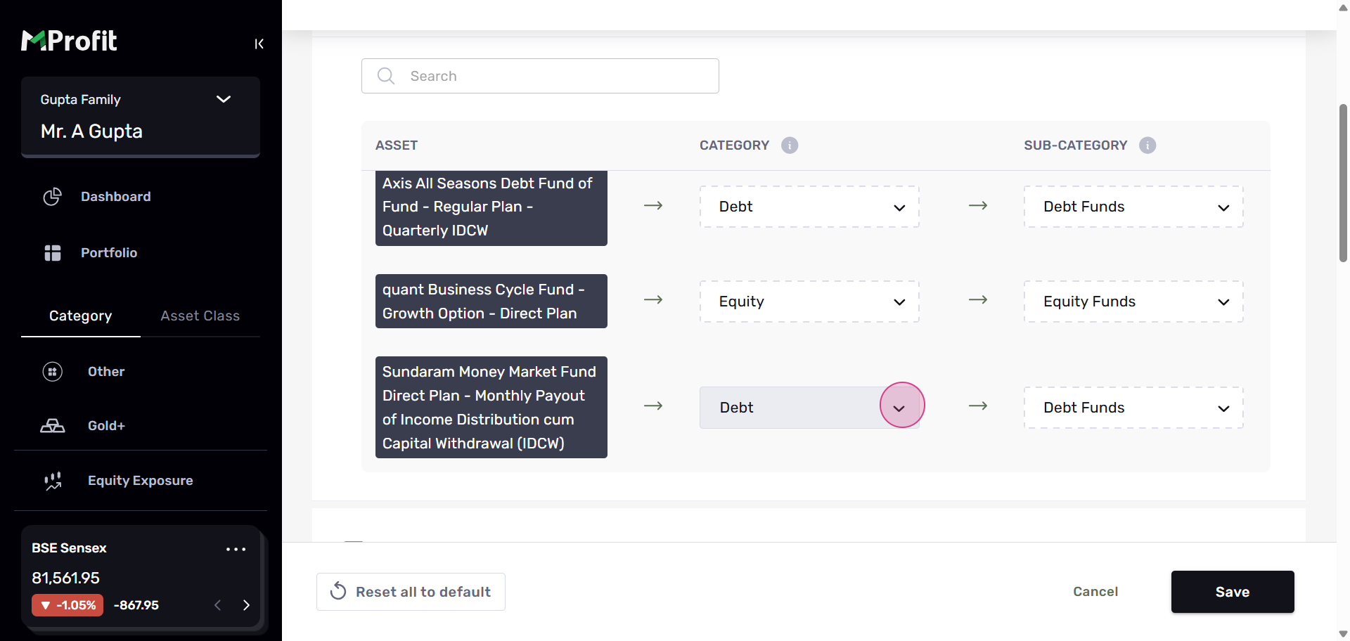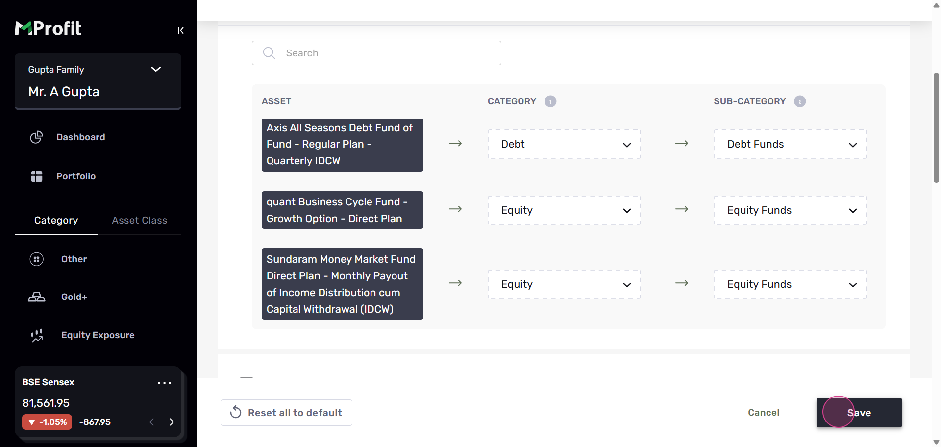 Step 15: You'll see the changes reflected in your portfolio. This change will be visible across all portfolios and families. At the top, you'll find a filter that displays the default or custom categorizations you've made.