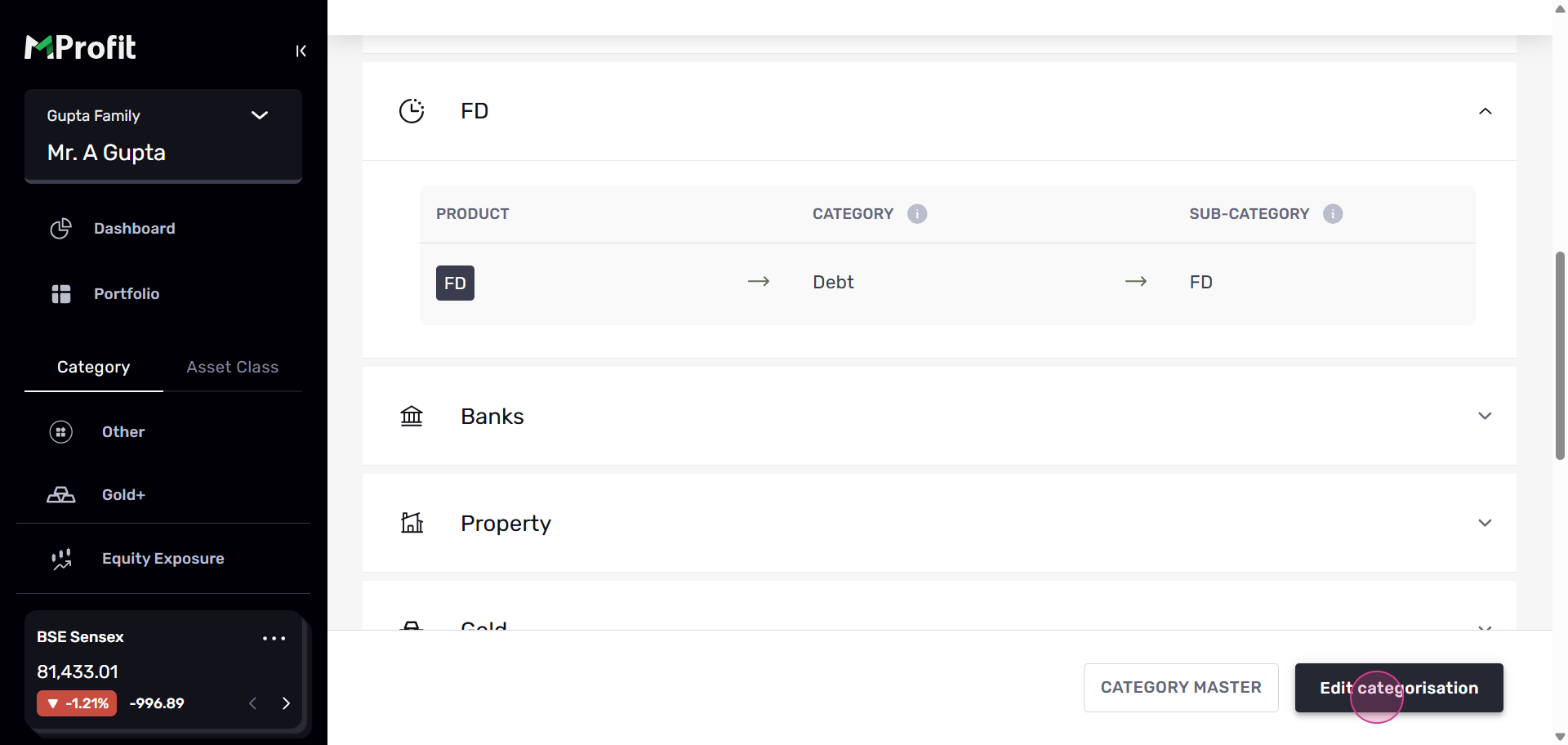 Step 5: To change the category for FD, click on Edit categorization.