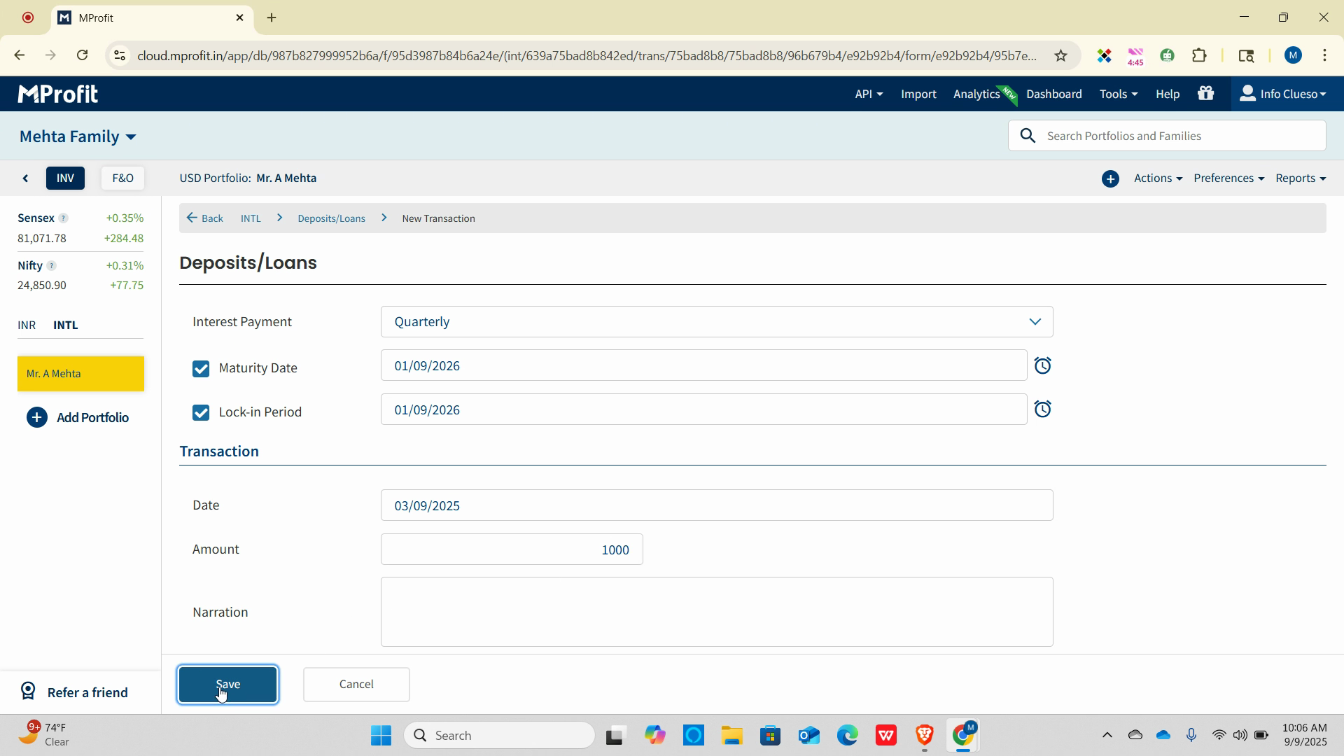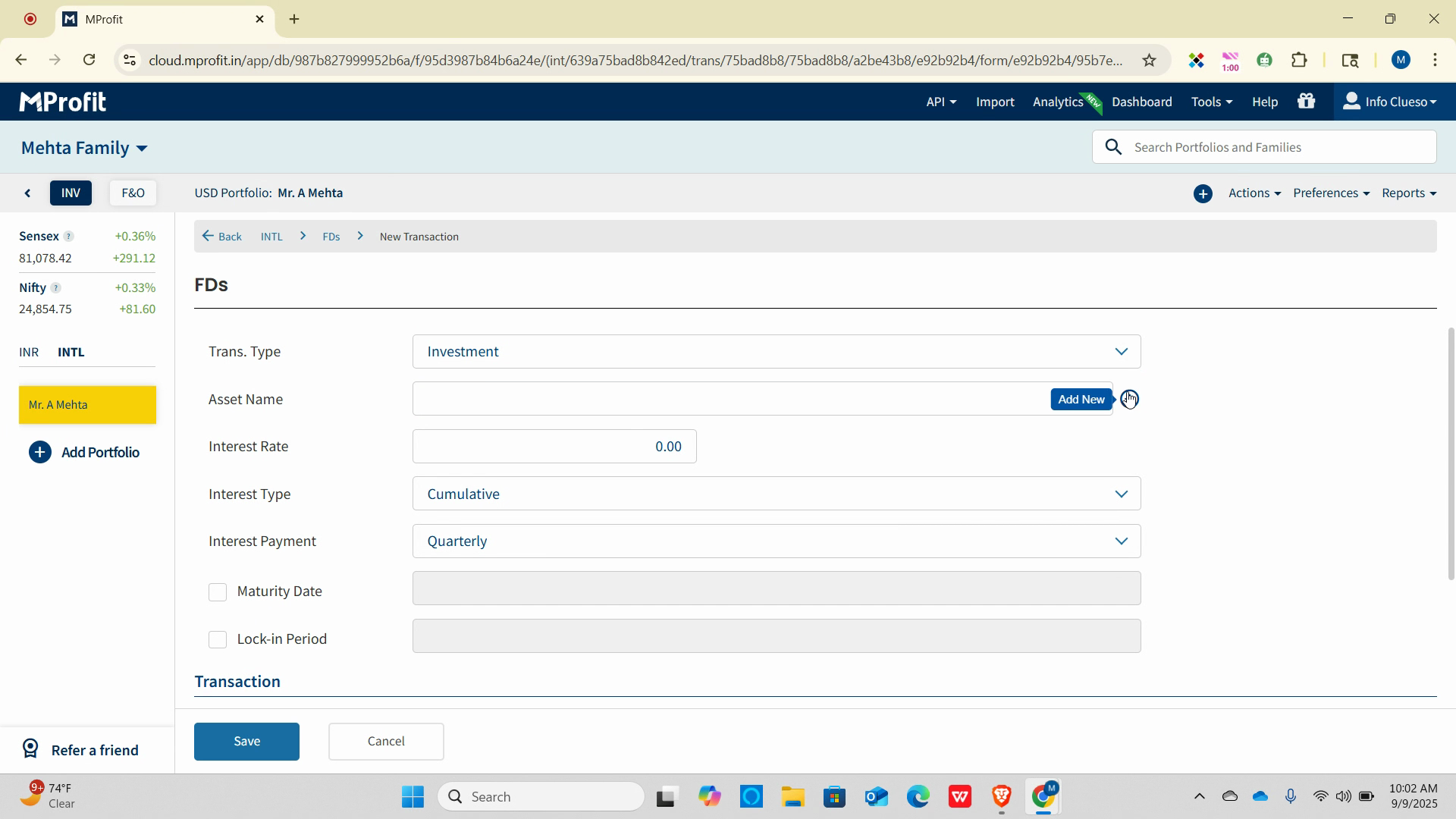 Adding a variety of assets to your international portfolio in MProfit makes it simple to diversify and keep your investments organized. Try adding your FDs and Deposits to stay on top of every asset in your financial journey!