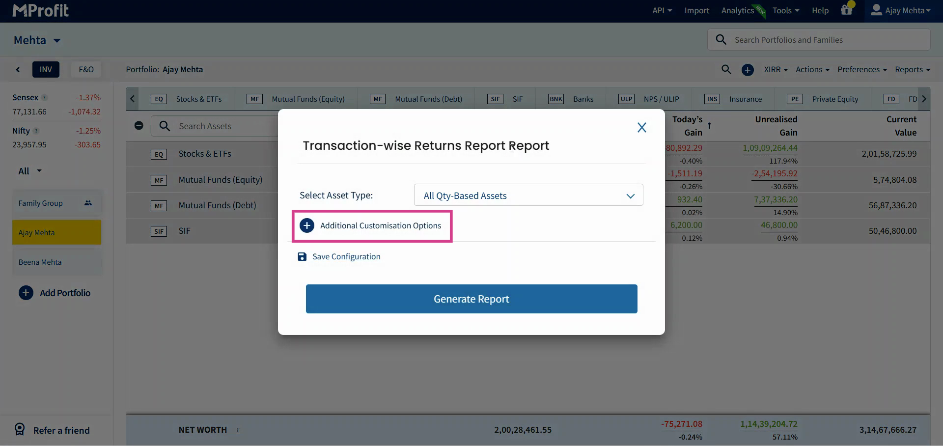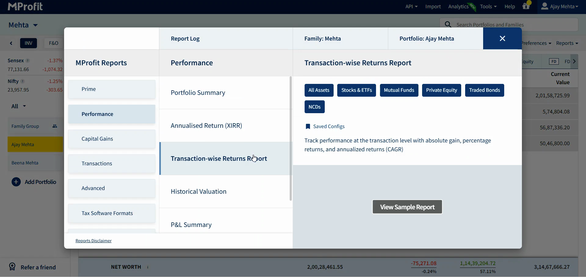 Step 2: Select the report you want to customize. In this case let's consider the Transaction Wise Returns Report.
