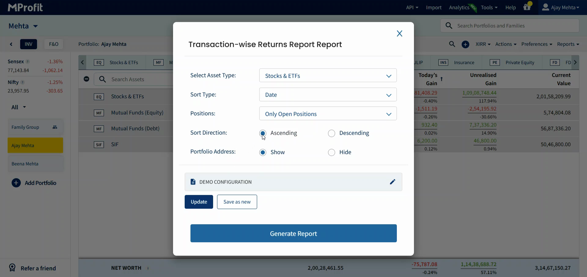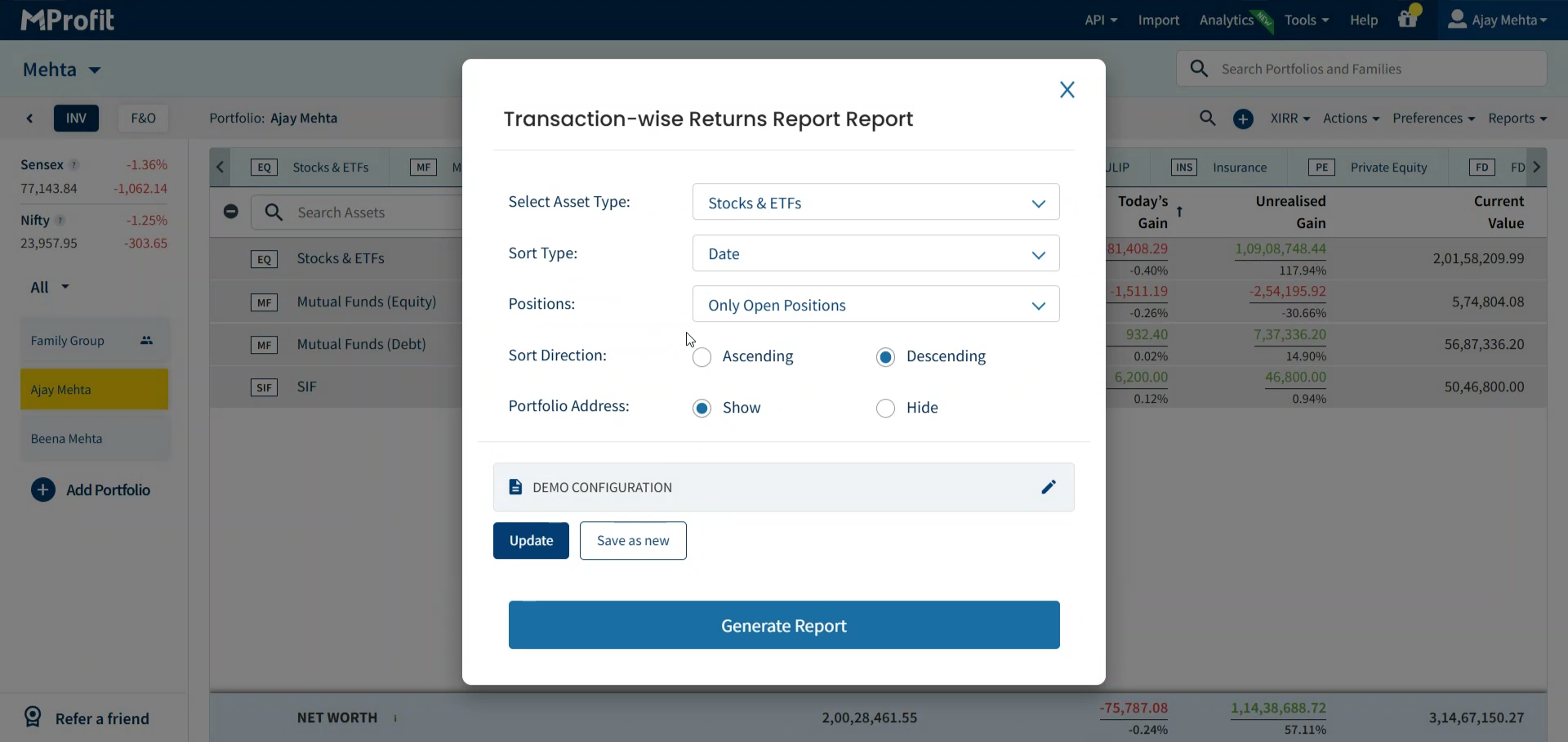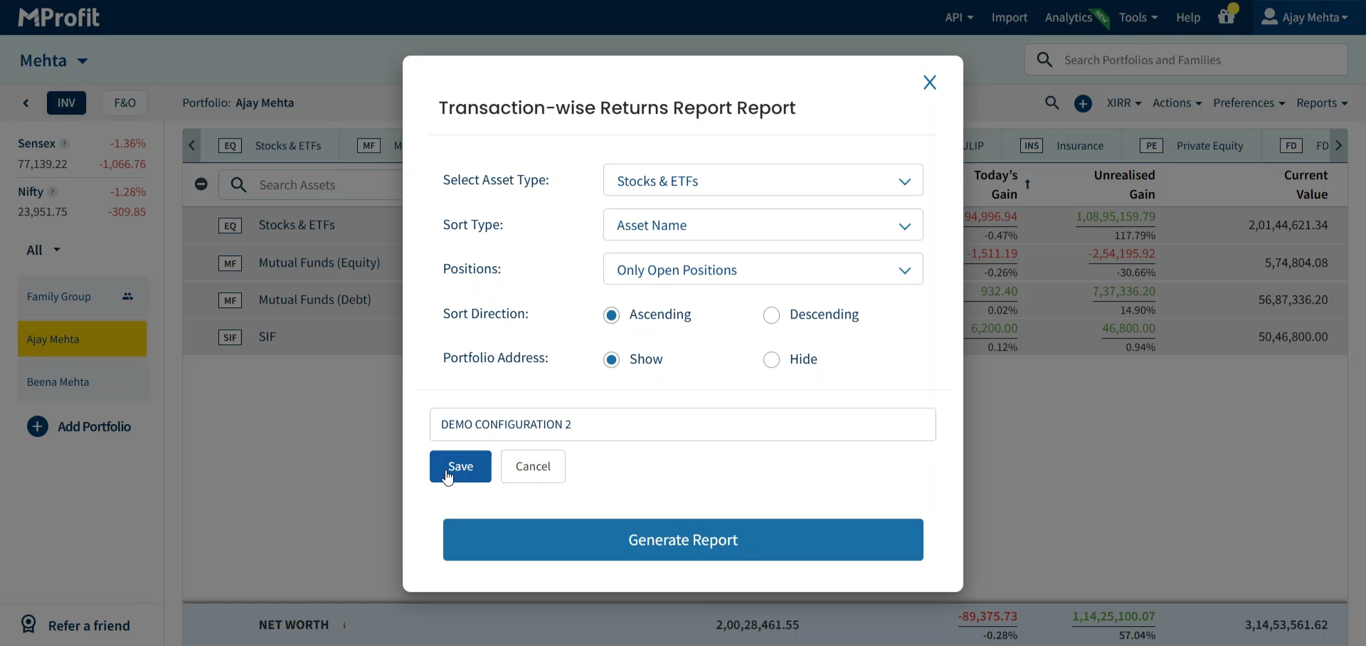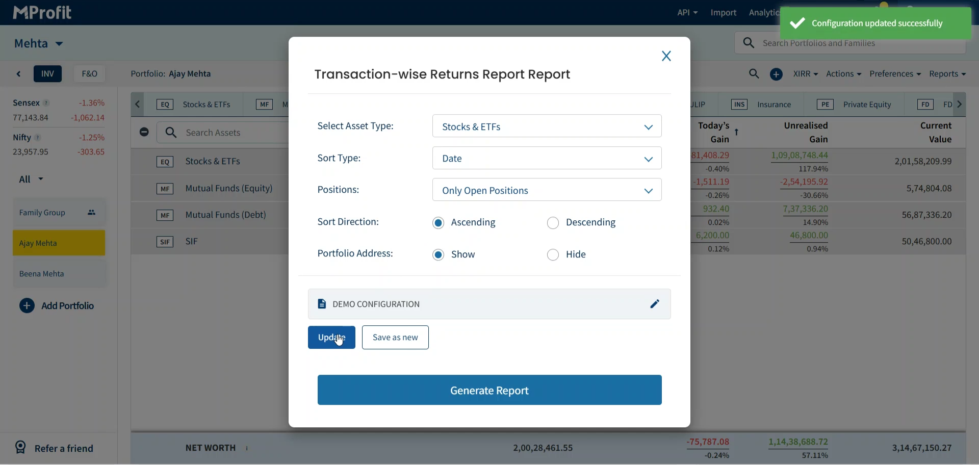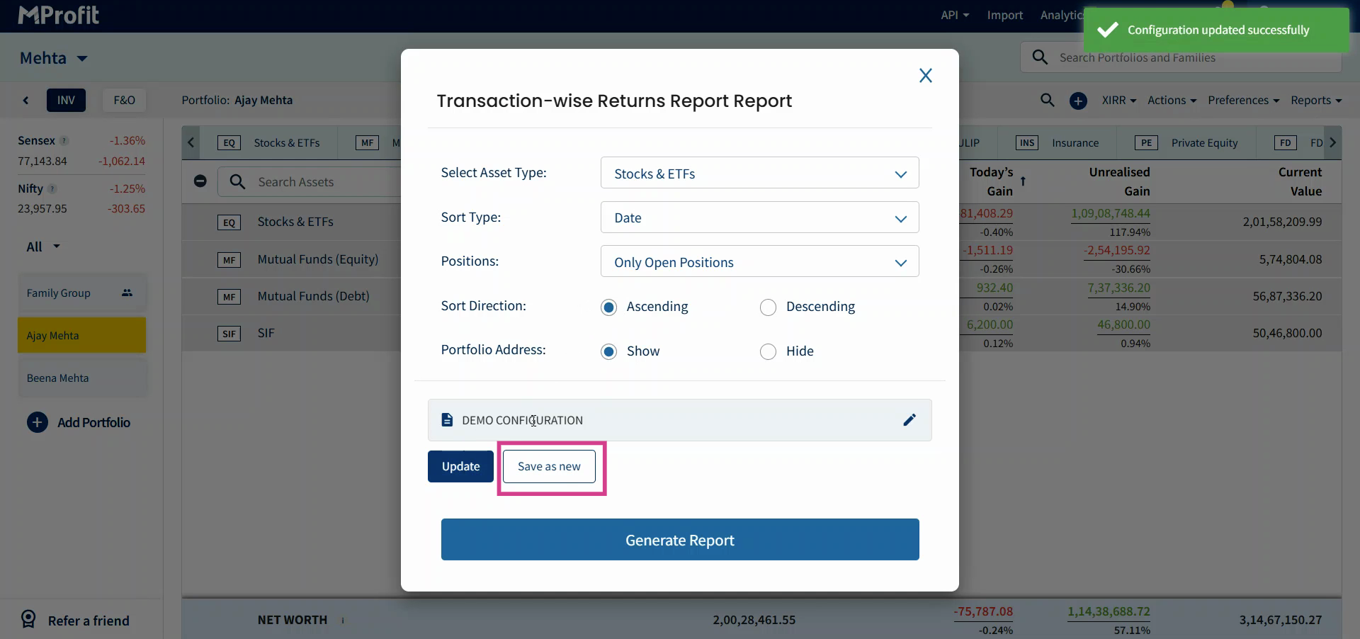Now you’re set to save, update, and manage configurations in MProfit, making repeat reporting fast and effortless.