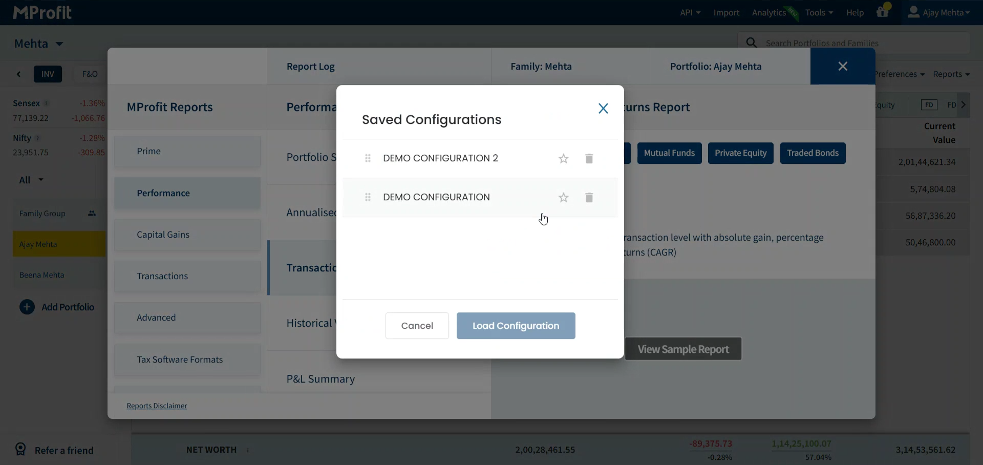 Step 2: Find your saved configuration in the list. Select it and click Load Configuration. Your report updates using all the settings you previously saved.
